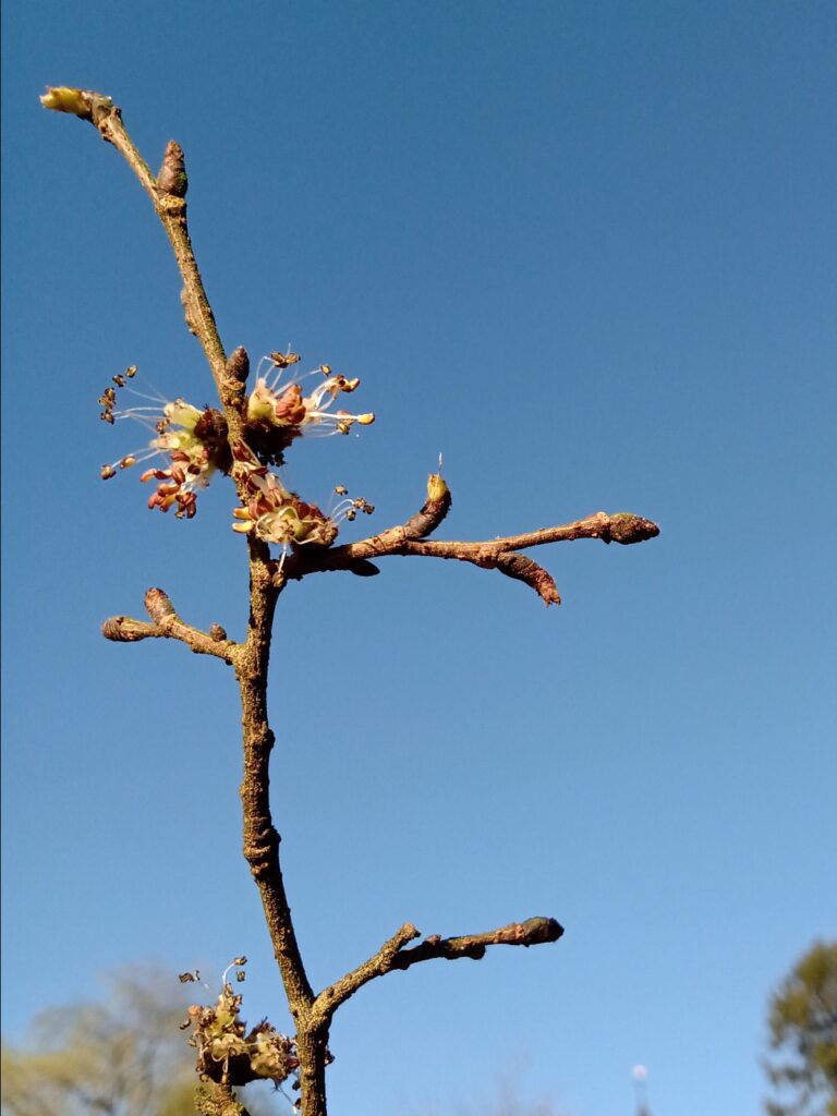 Het is een kleine boom, die langzaam groeit. Net als andere iepen bloeit ook deze iep in de vroege lente. De boom staat dan nog niet in blad en de wind heeft vrij spel om zijn bestuivingswerk te doen. We zijn natuurlijk nieuwsgierig of de boom vruchten gaat ontwikkelen.